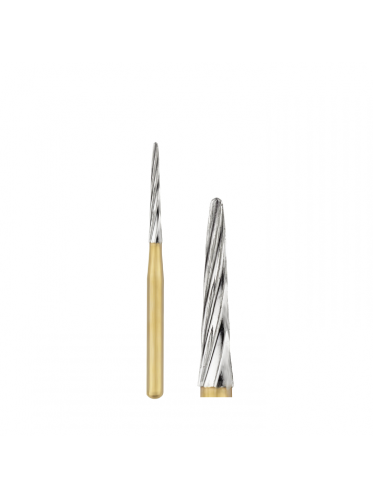 Estas brocas estão desenhadas para o alargamento lateral do acesso endodôntico, sem correr o risco de penetrar no chão da câmara pulpar. A ponta safe end impede que o acesso se torne mais fundo, permitindo apenas a expansão lateral.