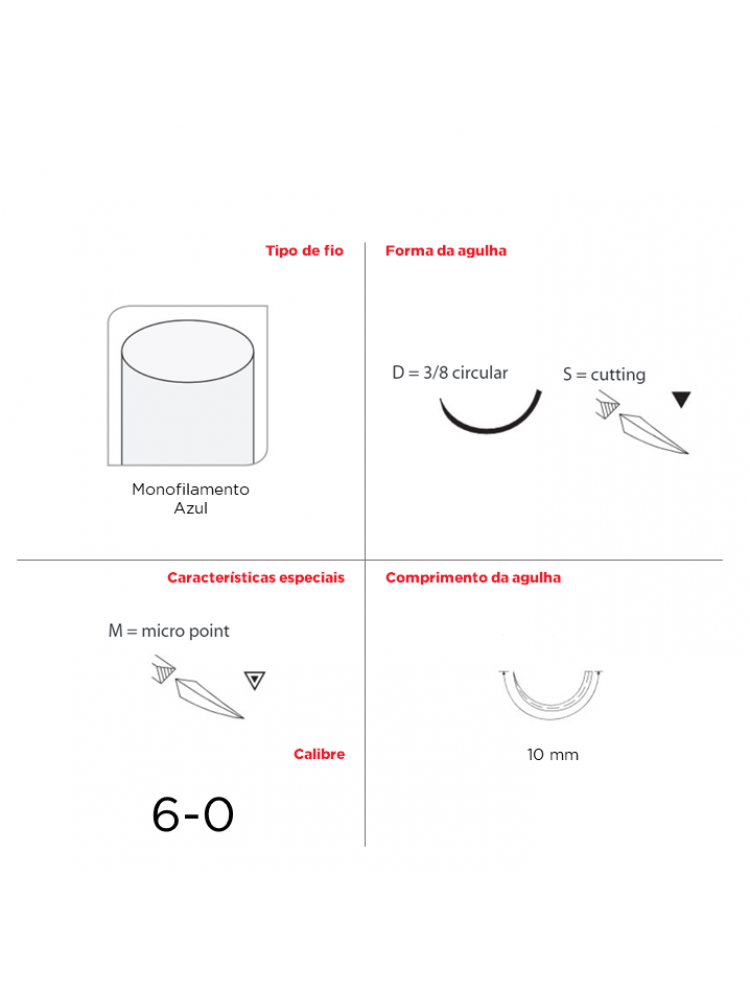 Suturas Stoma medilene DSM (6-0), 45cm - 10 mm (Pack 12)