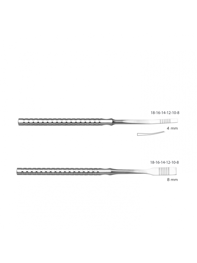 A ponta extremamente afiada destes instrumentos de precisão torna possível abrir e dilatara crista sem a utilização de um disco de diamante à priori.